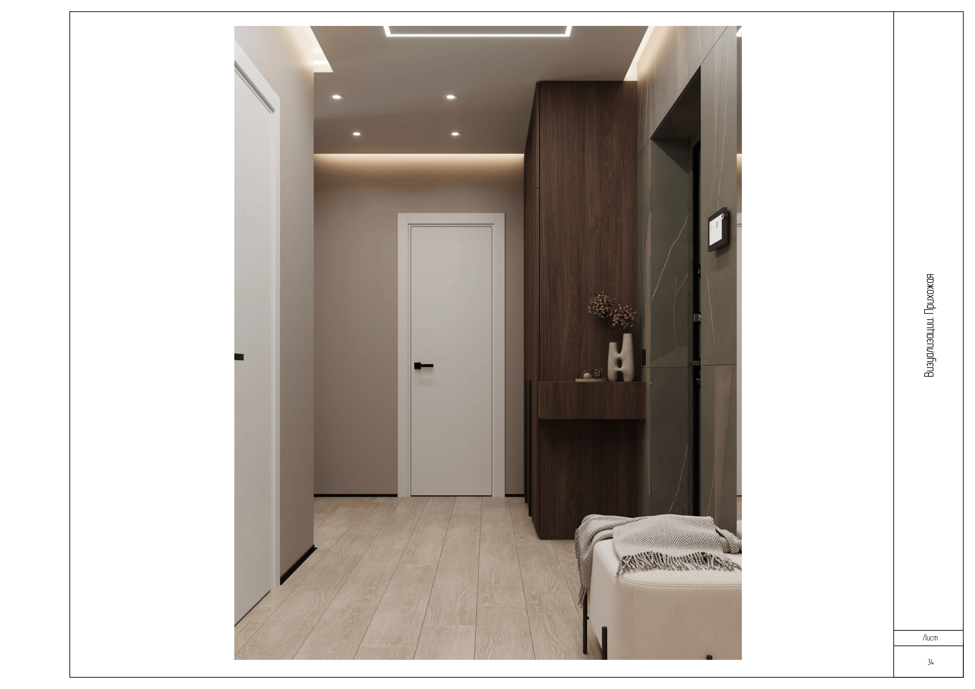 Дизайн-проект и 3D-визуализации интерьера. Бульвар 30-летия Победы, Волгоград. Планировка и подбор материалов под ремонт под ключ.